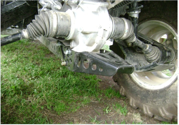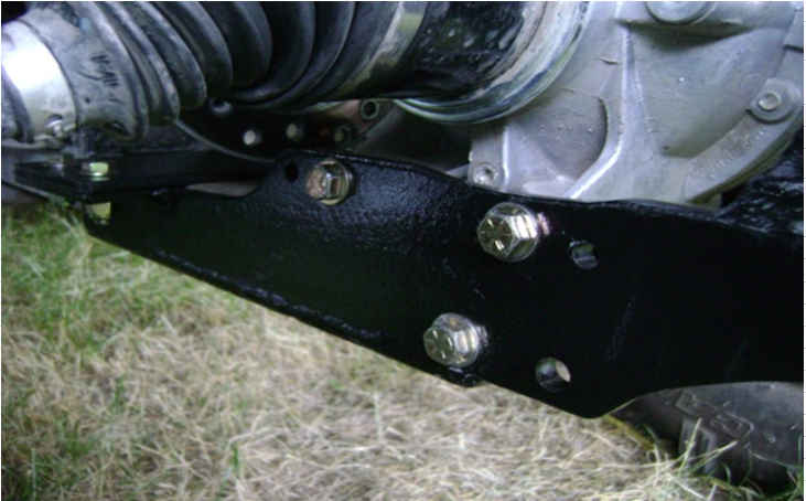 The plastic guard can be bolted onto the Assembly. (Optional) The 4 original bolts holding the plastic guard onto the factory trailer hitch can be used to bolt the plastic guard onto the Assembly. Assembly is now permanently attached onto the Can-am A.T.V. The bolts should be checked periodiocally to ensure they are tight.