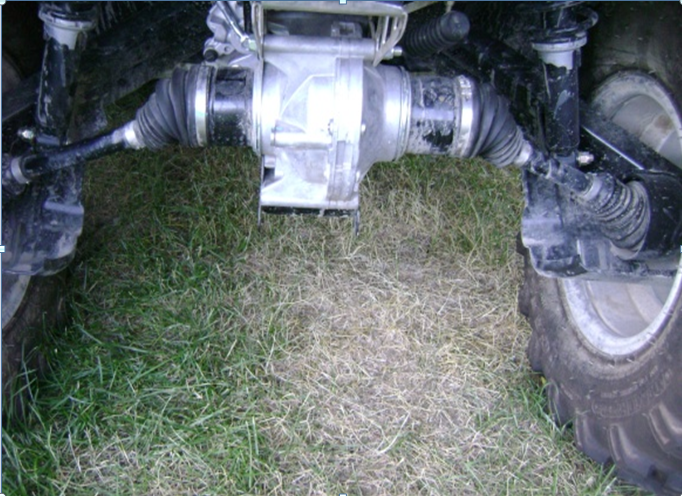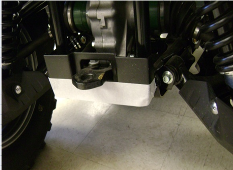 Wrap a piece of tape on the 3 sides of the plastic guard just below the factory hitch plate. Remove the 2 bolts holding the factory hitch plate onto the back end of the Grizzly model. Next, take-off the plastic guard. Cut the plastic guard above the tape line. Once the plastic guard is cut down, reinstall it onto the Grizzly Model.