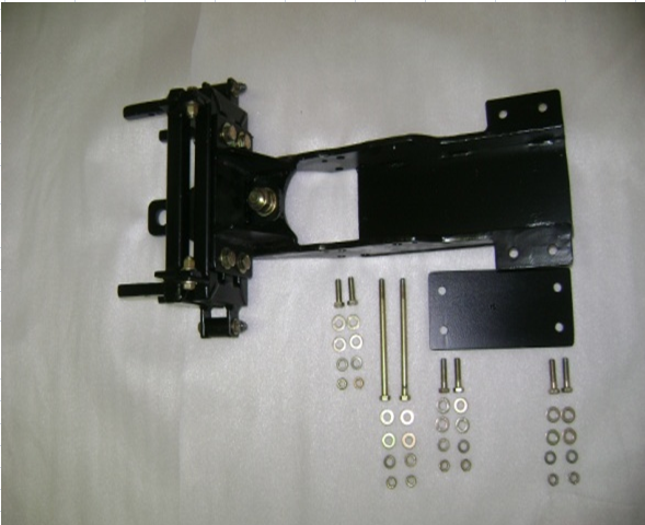 Remove the permanently mounted Assembly (Hereafter called the Assembly) from the package c/w 2-3/8" x 6" bolts, 4 washers, 2 lock washers and 2 nuts. You will also require 2- 3/8" x 1 1/4"" bolts c/w 4 washers, 2 lock washers and 2 nuts. Remove the plate with 4 holes from the package c/w 4-3/8" x 1 1/4" bolts with 8 washers, 4 lock washers and 4 nuts. You are now ready to install the Assembly onto the Can-am A.T.V.