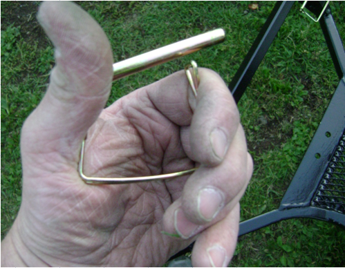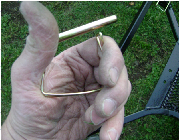 The Quad-Rite Flip Guard with either the Carrier Model or the Sport Model can be attached to the Assembly on the Can-am A.T.V. by removing the 4 quick pins, then sliding the Flip Guard onto the four square bars of the Assembly and then reinserting the 4 quick pins and then locking into the closed position. Ensure that the locking arm of the quick pins do not hang down where the terrain could dislodge them out of the holes in the Flip Guard. Insert pins as in picture. (Locking arms are kept to the inside of the Flip Guard.)