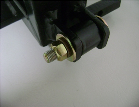 A second person is preferred when installing the Assembly onto the back of the Can-am. One person holds the Assembly under the Can-am in the same location as a factory trailer hitch. One 6" bolt is slid through one side of the Assembly, then through the body of the Can-am and finally through the second side of the Assembly. The nut is then finger tightened. (There are 2 washers provided with each bolt. One washer on the bolt side and the other on the nut side with lock washer.)